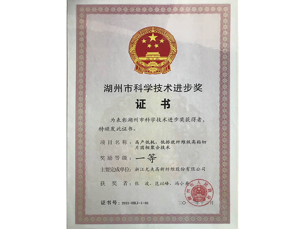 2011湖州市科技進步一等獎